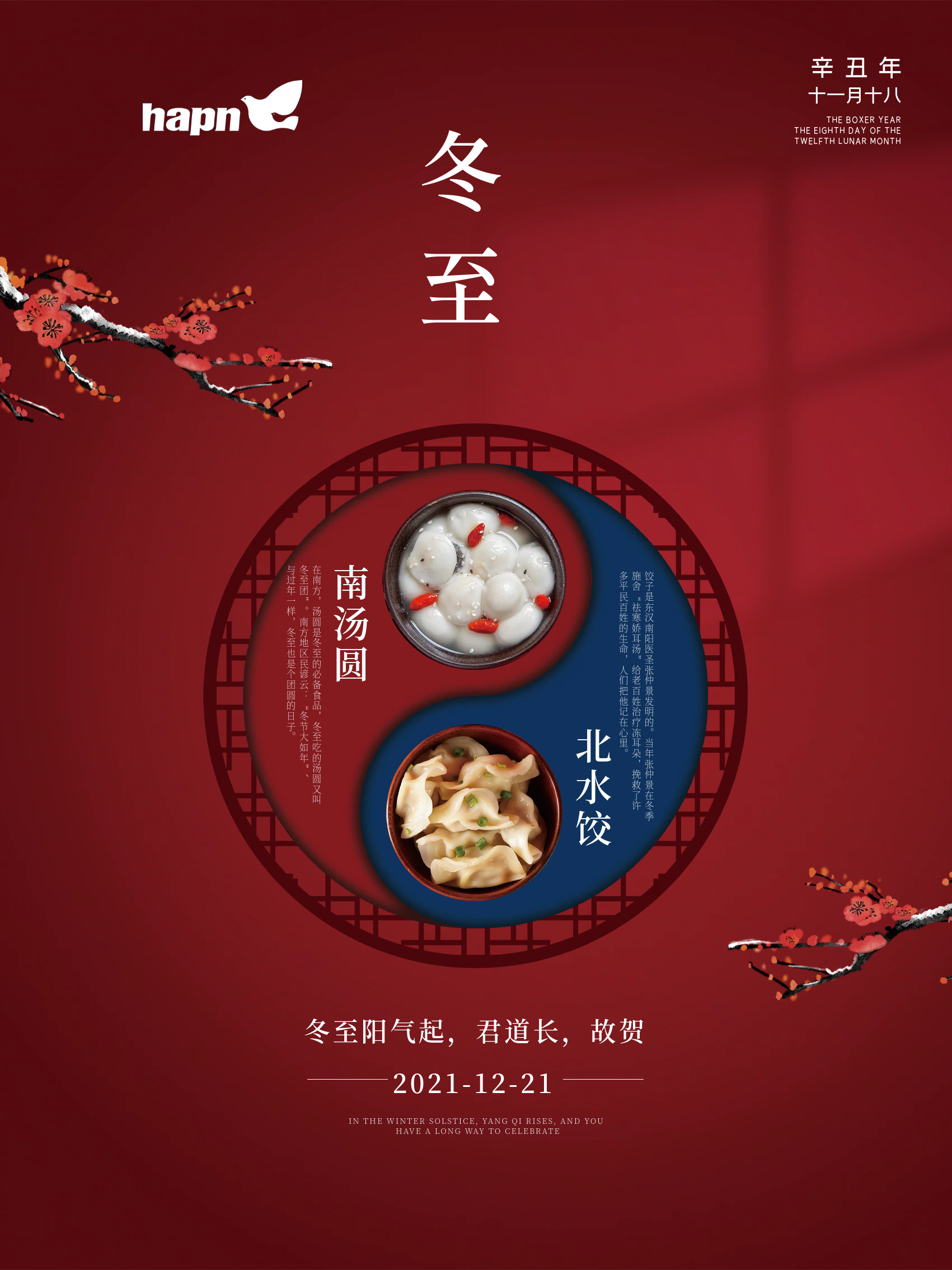 十二月里來喜事多,冬至團(tuán)圓平安夜,圣誕快樂元旦歡。餃子湯圓包和諧,平安燭火照吉祥;烤雞烤鴨藏學(xué)問,琴聲炮聲奏凱歌;玉樹長襪存好運(yùn),一生福氣享不完。