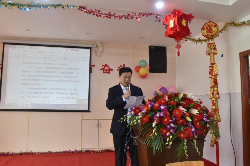 東莞市新望包裝機械有限公司2020年年度總結大會于2021年1月24日下午14:30在公司食堂隆重舉行。年終會議由行政部經(jīng)理張麗君主持。公司黨支部書記潘婉荷對黨支部成立5年以來的黨員活動和黨建工作做了匯報和總結。公司運營管理中心和技術創(chuàng)新服務中心兩套班子成員緊靠大會主題“征途漫漫,惟有奮斗”進行總結與探討,盤點過往成績與不足,為公司2021年戰(zhàn)略規(guī)劃獻計獻策,常委班子成員都發(fā)表了熱情洋溢的講話。公司總經(jīng)理羅永輝做了《前程無坦途 唯有奮起爭》的年度工作報告。