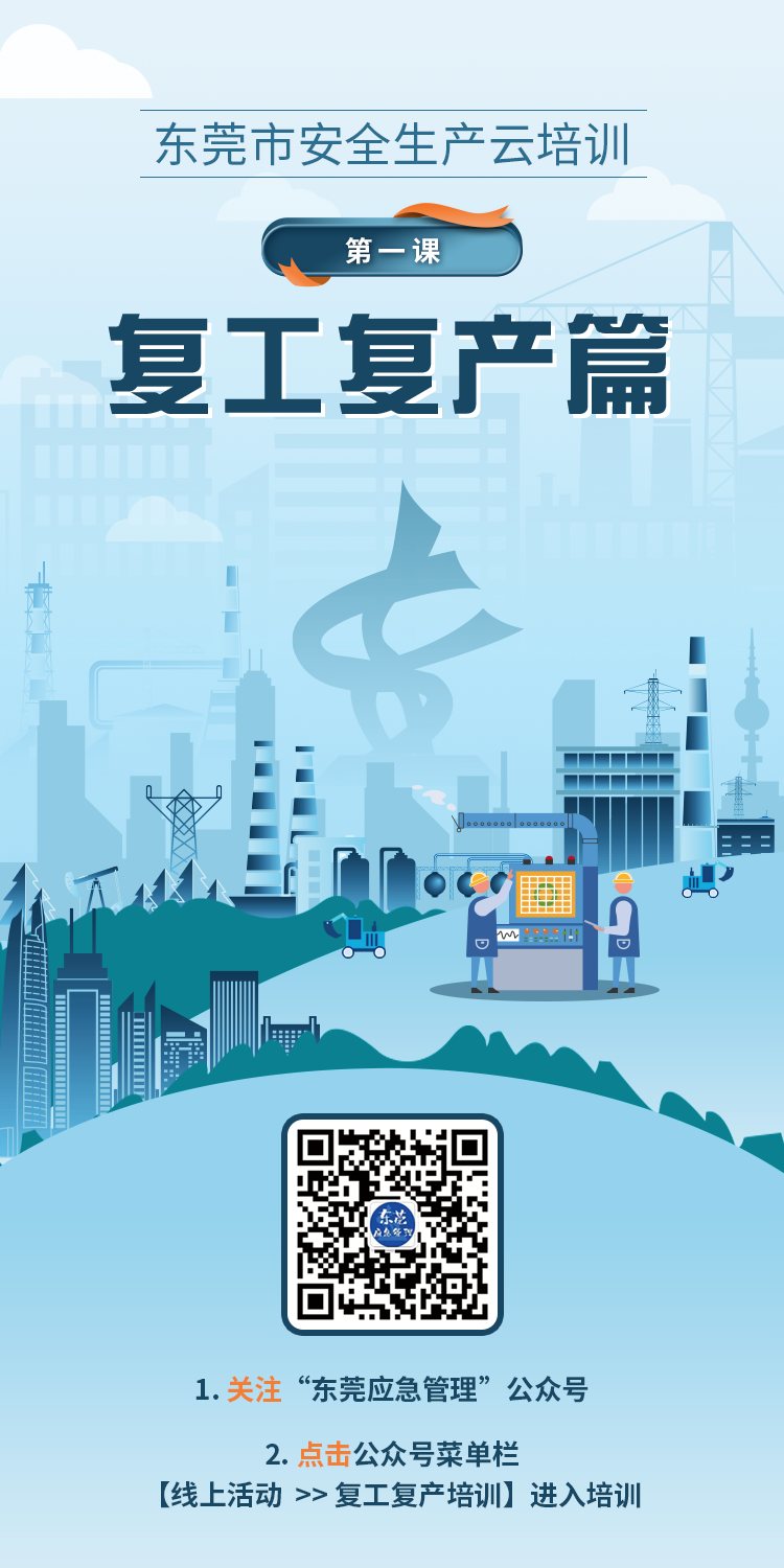 參與指南:關(guān)注“東莞應(yīng)急管理”公眾號(hào),通過點(diǎn)擊公眾號(hào)菜單欄【線上活動(dòng)→復(fù)工復(fù)產(chǎn)培訓(xùn)】,登記個(gè)人信息,完成注冊(cè)后,點(diǎn)擊“我要參加”進(jìn)入培訓(xùn)內(nèi)容界面,點(diǎn)擊觀看視頻進(jìn)行學(xué)習(xí)。