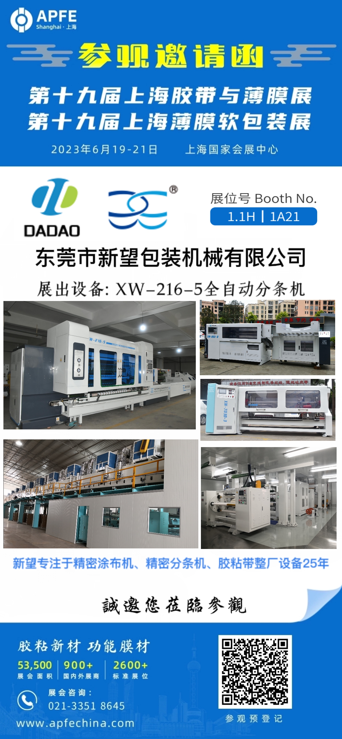 #第十九屆上海國際膠帶與薄膜展覽會#第十九屆上海國際薄膜軟包裝展覽會 2023年6月19日至21日 上海國家會展中心1.1H館 展位號1A21,期待您的蒞臨指導(dǎo),與您不見不散