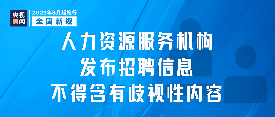 《人力資源服務(wù)機構(gòu)管理規(guī)定》8月1日起施行。明確人力資源服務(wù)機構(gòu)接受用人單位委托招聘人員的,發(fā)布招聘信息應(yīng)當(dāng)真實、合法,不得含有民族、種族、性別、宗教信仰等方面的歧視性內(nèi)容。