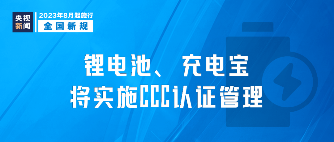 市場監(jiān)管總局發(fā)布公告,自2023年8月1日起,對鋰離子電池和電池組、移動電源實施CCC認(rèn)證管理;自2024年8月1日起,未獲得CCC認(rèn)證證書和標(biāo)注認(rèn)證標(biāo)志的,不得出廠、銷售、進口或者在其他經(jīng)營活動中使用。