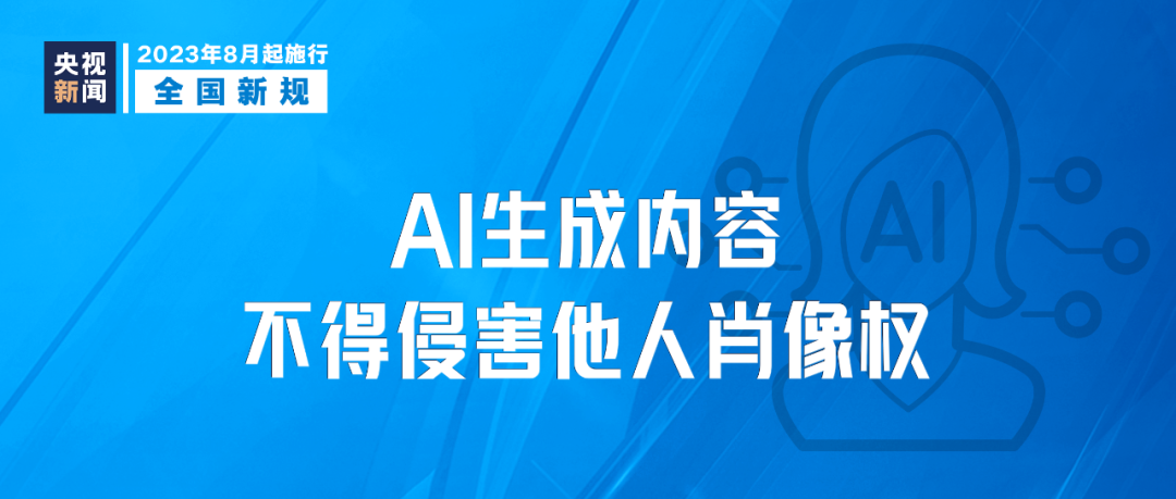 《生成式人工智能服務(wù)管理暫行辦法》8月15日起施行,提供和使用生成式人工智能服務(wù)應(yīng)當(dāng)尊重他人合法權(quán)益,不得危害他人身心健康,不得侵害他人肖像權(quán)、名譽權(quán)、榮譽權(quán)、隱私權(quán)和個人信息權(quán)益。