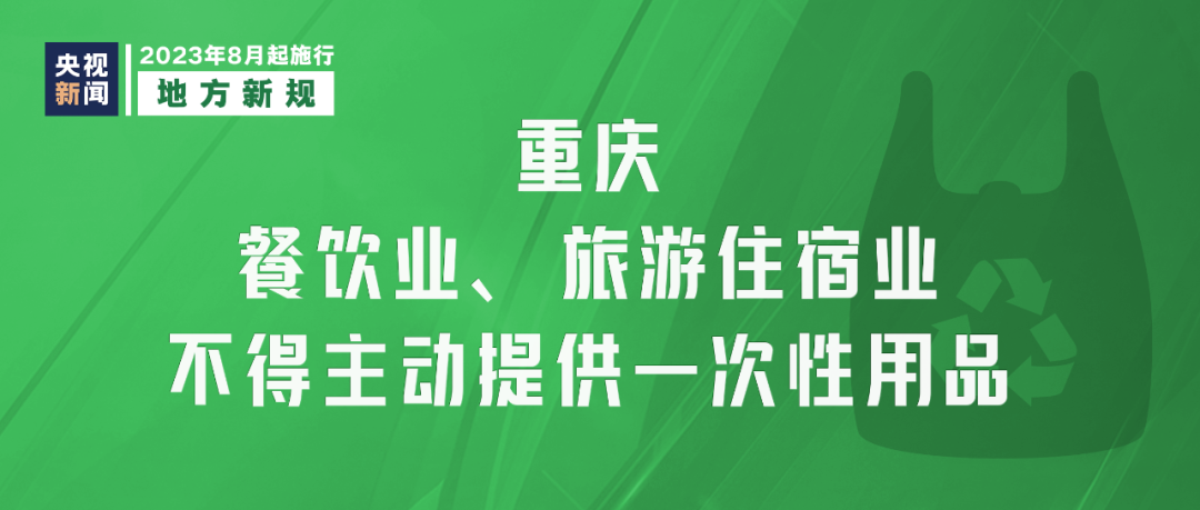 《重慶市一次性用品目錄清單管理辦法》8月1日起實施,要求重慶市餐飲業(yè)、旅游住宿業(yè)不得主動提供一次性用品,鼓勵使用易降解、可回收再利用的綠色環(huán)保產(chǎn)品。外賣平臺應(yīng)積極引導(dǎo)消費者減少使用一次性用品。