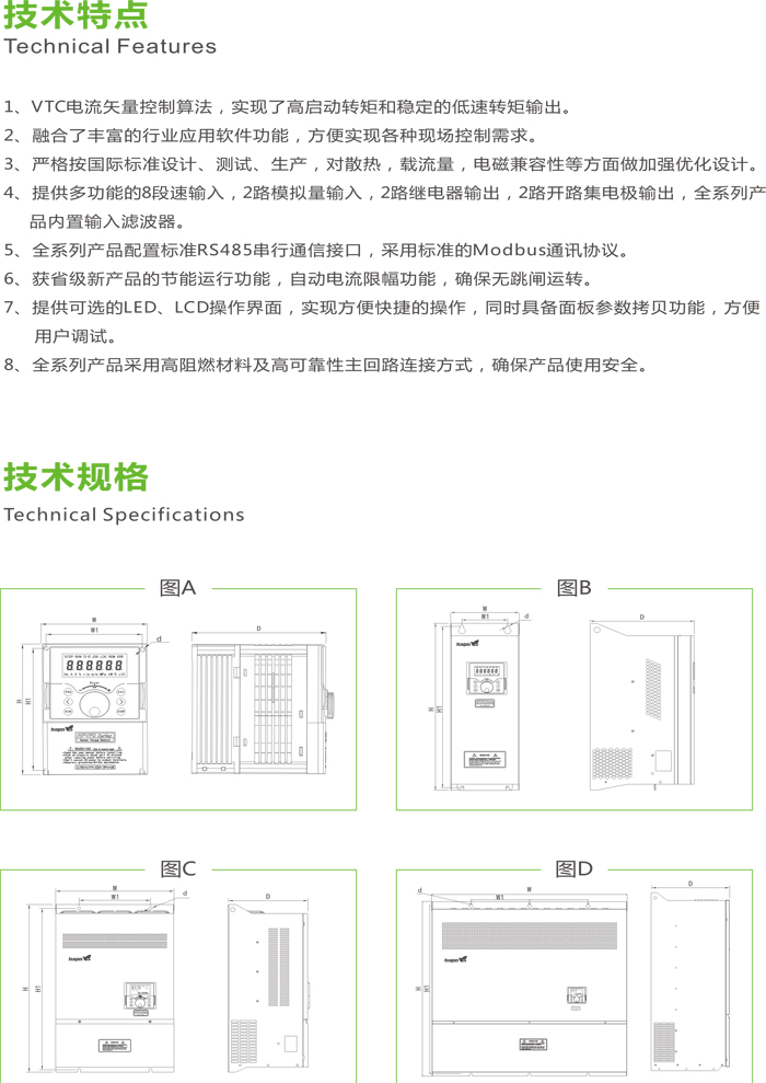 HPVFD系列是適用于工業(yè)工程和商業(yè)工程領(lǐng)域內(nèi)的高品質(zhì)系列產(chǎn)品,通過獨特的電流矢量控制,對電機(jī)有著極佳的控制特性,適合各種機(jī)械傳動類負(fù)載。書本型結(jié)構(gòu)設(shè)計非常適合柜內(nèi)多臺安裝。中文顯示操作界面,可以方便迅速的進(jìn)行安裝、連接和調(diào)試,全系列產(chǎn)品已通過CE電磁兼容認(rèn)證。